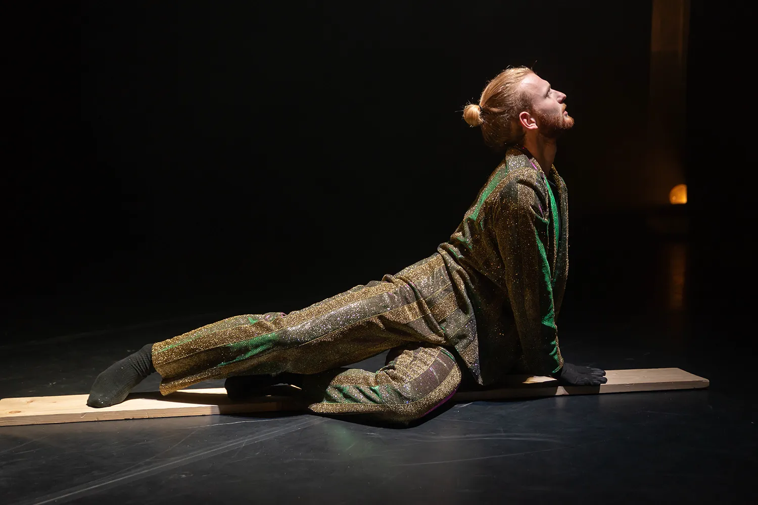 Par un enchaînement d’univers sonores rythmés et une lumière poétique, les danseurs vont être amenés à communiquer en repoussant leurs limites, dans un décor très épuré. Seuls une grande toile opaque marron, deux planches de bois de leurs corps vont être leur moyen d’expression, de conflit, de refuge et d’abandon. Le but étant de parvenir à trouver une liberté d’interprétation à travers l’exercice d’une écriture chorégraphique puissante et physiquement intense qui défie les lois de la gravité, des genres, de la répétition et de la rapidité.